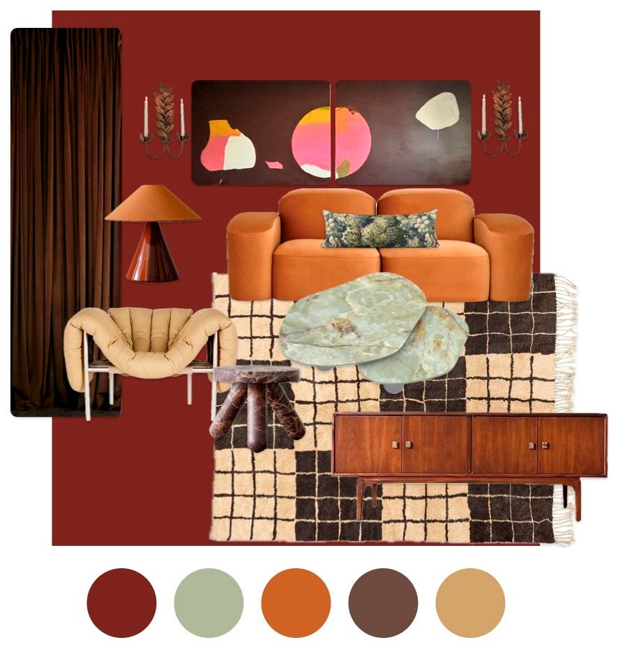 Mood Board: Here’s a mix of what I already have, plus ideas I’ve been playing with. I even tested wall colours to see how everything resonated together. It’s actually fun to play until it clicks, rather than regretting a piece later. Freeform (Apple’s design app) made it easy to test how pieces fit together visually, but honestly, pasting images into an email or pinning on Pinterest works too.